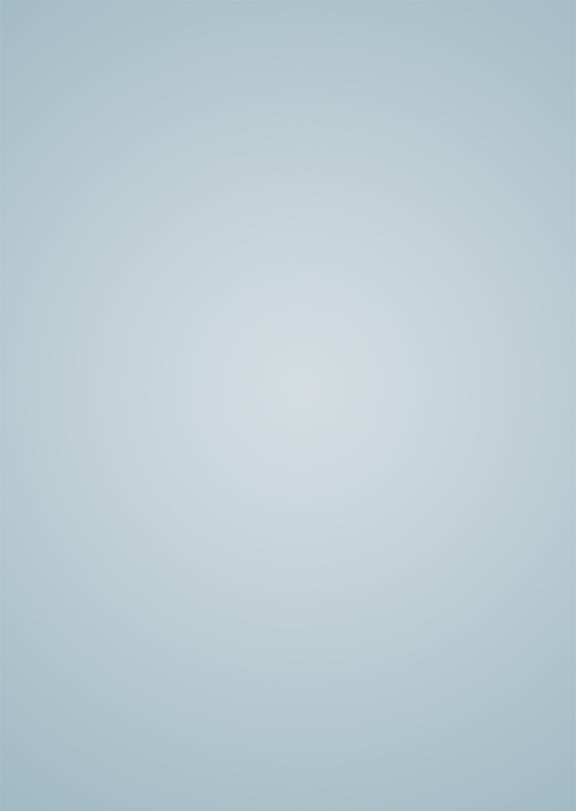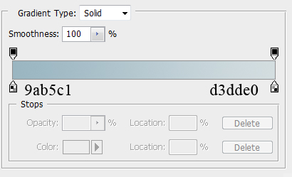 Create a new document that is roughly 650px wide and 850px high at the default Photoshop resolution. Grab your gradient tool, and fill the "Background" layer with a radial gradient, with the foreground color as 9ab5c1, and the background color as d3dde0.