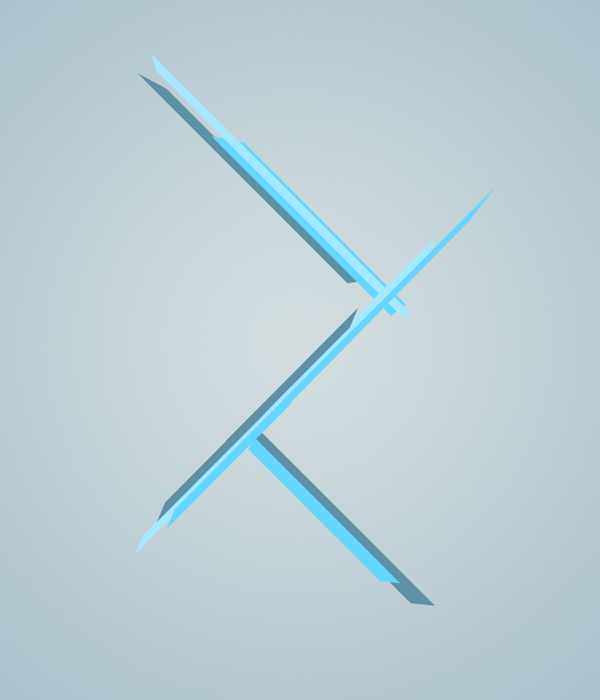 Now we have these shapes, it’s time to apply them to the piece. Again, using an L shape is a good idea, because if you rotate it 45 degrees, whichever direction the L shape points to, it will always be parallel with the flow of the piece.Vector masks mean you can paint whatever you want to the layer and it won’t affect the overall shape of the object. I fill each layer with a dull blue and vary this slightly for each of the shapes. I take a soft brush and brush the edges of the shapes slightly white and black to make it look better. This is similar to the brushing of the orbs using clipping masks in Step 8.