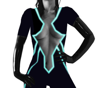 She wouldn’t be authentic Tron style without some crazy neon lunacy going on in the background. I found some