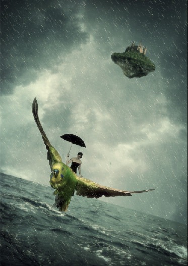 Learn how to create this surreal fantasy image of a lady on an epic budgie. You’ll learn how to combine and blend several stock photos, create a rain storm, then finish it off with a photo effect.