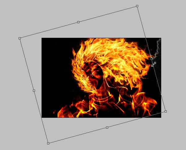 Still in "Layer 2," apply the Free Transform command to resize and rotate the fire image like shown below. The purpose is to cover up the girl’s body and hair with the fire texture. Press Enter when you’re done transforming.Step 17