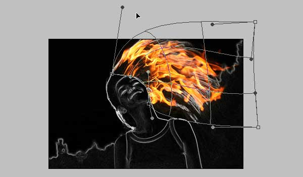 Still in the same layer, now use the warp command (Edit > Transform > Warp) to bend the fire image – so it following the hair flow. Press Enter when done. See the example below as a reference.Step 12